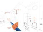 Since the exhibiting company deals in products for bathrooms, we have foreseen to use the water to characterize the setting. Thus we have created an artificial lake that accompanies the visitor along the display path.